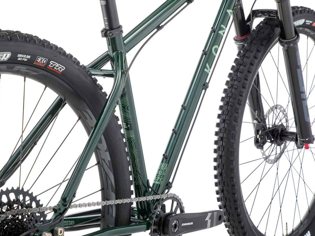 Beyond legend, forged in steel, The LBF is the rowdiest drop-bar machine to escape the minds of Kona and the wilderness of the PNW. Turning myth into metal, it's built for riders who push drop bars way past their comfort zone. Steel is real again and a 100mm suspension fork tames the rough stuff, while a custom-for-Kona pairing of SRAM Apex Eagle levers and powerful G2 calipers delivers MTB-level braking control—without sacrificing drop-bar comfort. Burly Raceface rims wrapped in wider, grippy Maxxis tires keep you planted when the trails turn wild. From chunky backcountry descents to barely-there singletrack, the LBF is ready for the most unhinged adventures only whispered about.