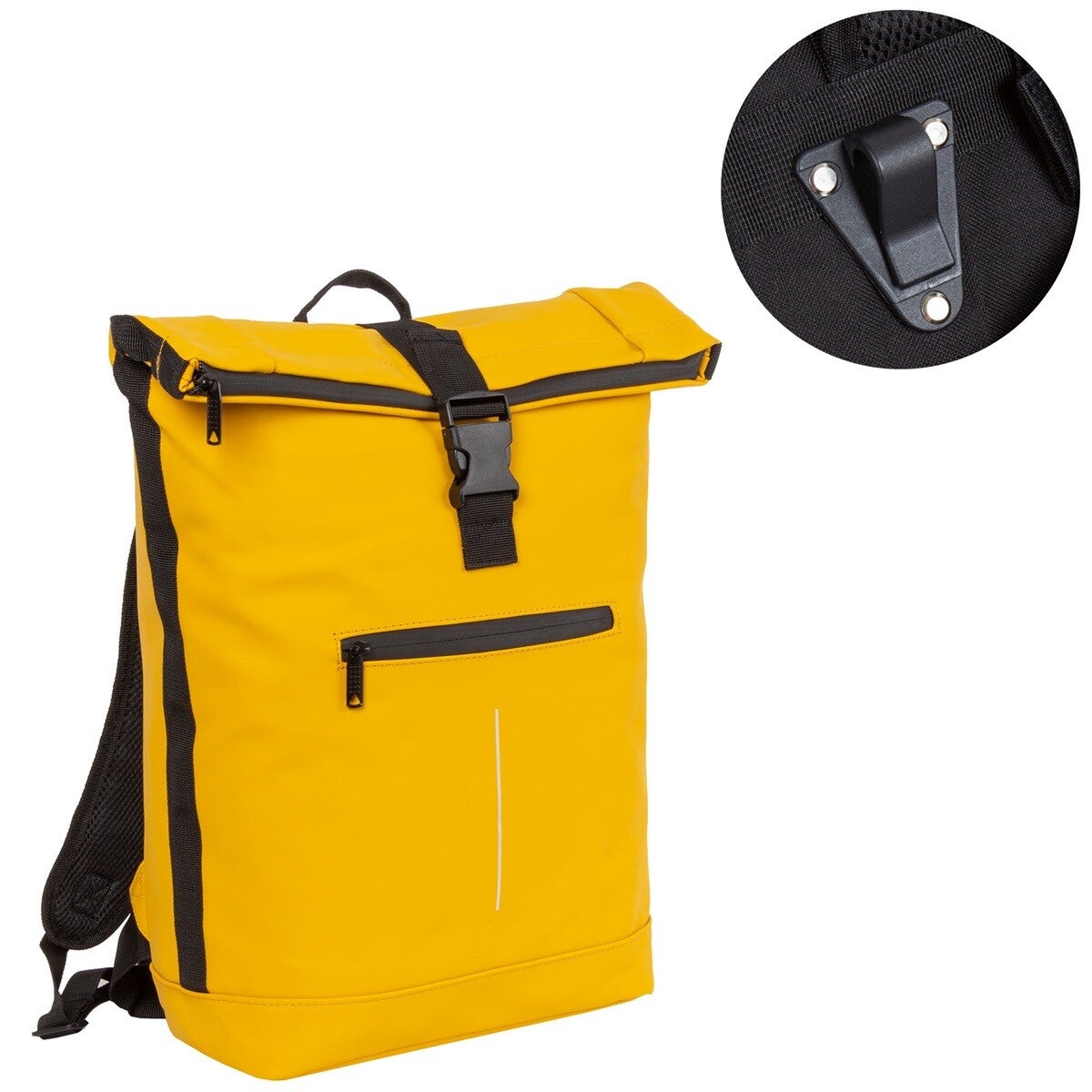 Waterafstotende New Rebels Rugzak die je gemakkelijk kan oprollen en op de bagagedrager van je fiets kan vastzetten.