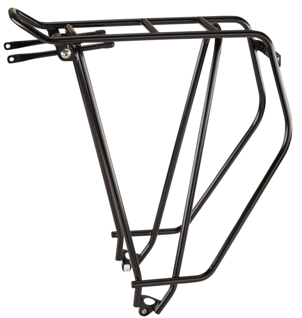 "The most tried and tested allround carrier updated for today’s challenges: 3D feet with perfect force absorption and integrated screw attachment. Comfortable mounting parts for mounting the stays to the frame. Including protection of tail light. If required, a spring clamp can be clicked onto the carrier. Armed for the next tour."