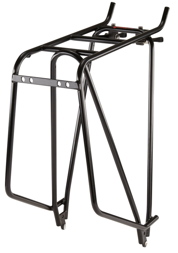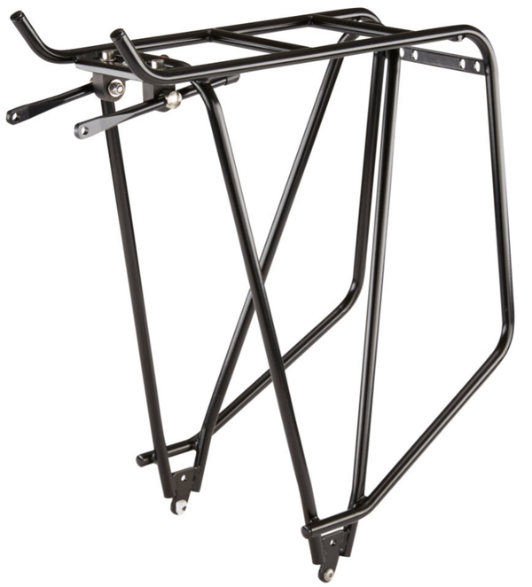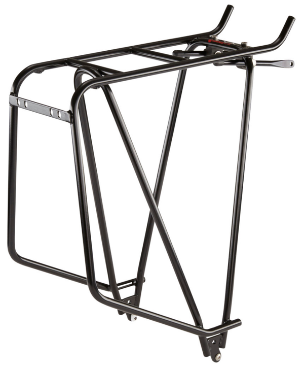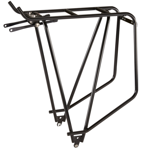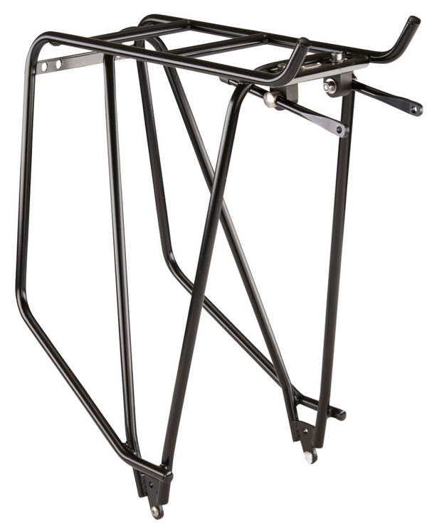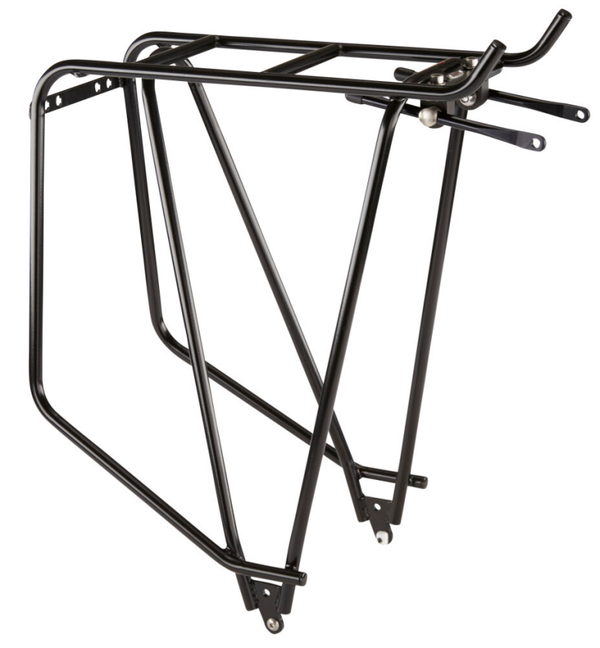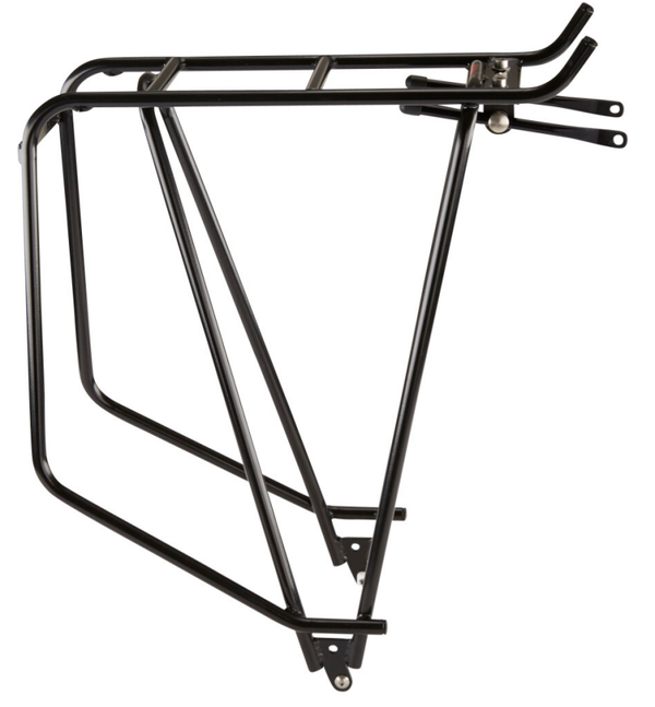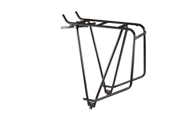 "Our classic model—on the road around the world since 1988. This modell is the basis for all of our rear carriers. CARGO has been tested and loved by its owners in tough daily routine since 30 years. CARGO is our all-round happy solution for transporting luggage on the bike. CARGO is good for your daily ride or as packhorse for your next world tour. It fits most bikes and carries most panniers."